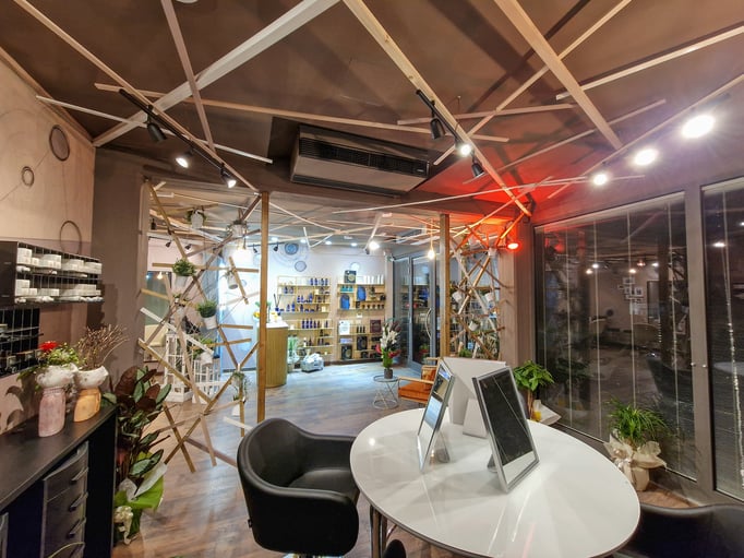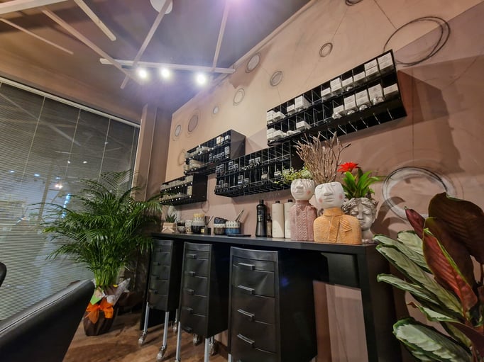 Ho considerato gli elementi tecnici già previsti come le poltrone per il lavaggio o per il taglio, i complementi per il contenimento dei vari colori e così via: intorno a essi ho costruito un ambiente dall'appeal della boutique in cui i clienti possano sentirsi avvolti, a proprio agio e concedersi un vero e proprio momento di relax.