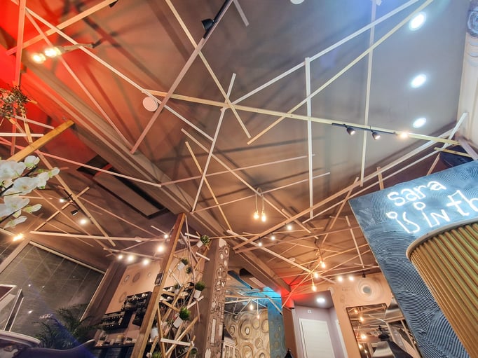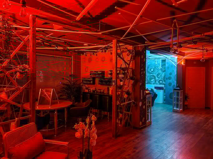 Quello che ricerco attraverso il lavoro in interior è l'immediata riconoscibilità della mia firma una volta che si entra e si vivono gli spazi che ho la possibilità di creare. Tutto ciò passa attraverso un connubio di differenti fattori: le tavolozze cromatiche scelte, gli elementi e i complementi presenti, il set luci, i miei intrecci e disegni su soffitti e pareti e così via. Un intero pacchetto fisico/visivo/concettuale che si rifà alla mia stessa firma ma che si adatta ed evolve di volta in volta sulla base dello spazio in cui sono chiamato a intervenire.